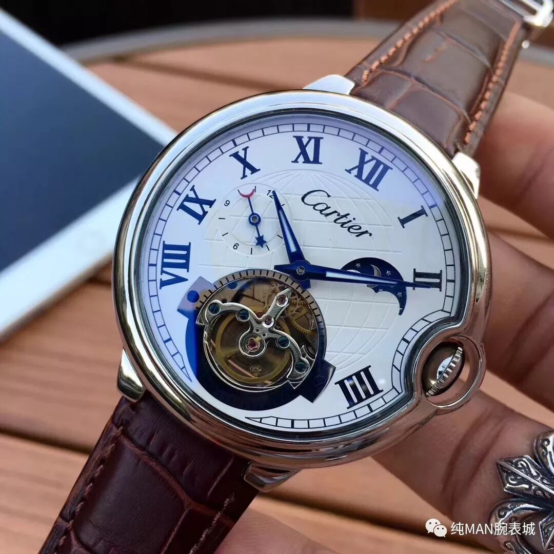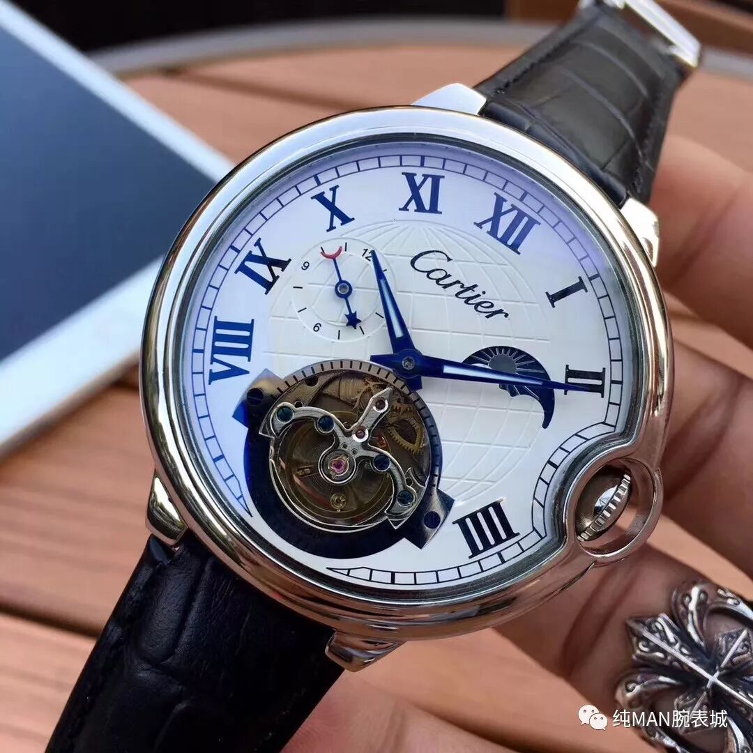 卡地亚-C。ARTIER‼️蓝气球系列????内置顶级陀飞轮机械机芯 ☑️尺寸43mm 进口矿物质蓝光玻璃镜面 316L精钢材质 进口牛皮
