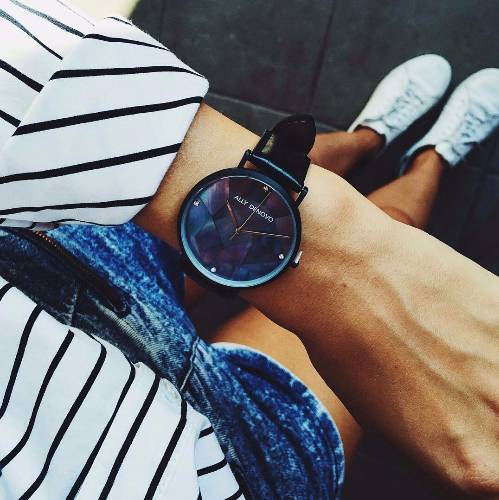 ALLY DENOVO的手表以大理石纹路、珍珠和琉璃拼接的摩登造型为亮点活跃于时尚达人之间,低调时髦有内涵,意大利选材+设计,瑞士制造,款式多样,但价格比较平易近人,在日本格外受欢迎。另外,利落简洁的黑灰设计在男士之间也是好评连连!