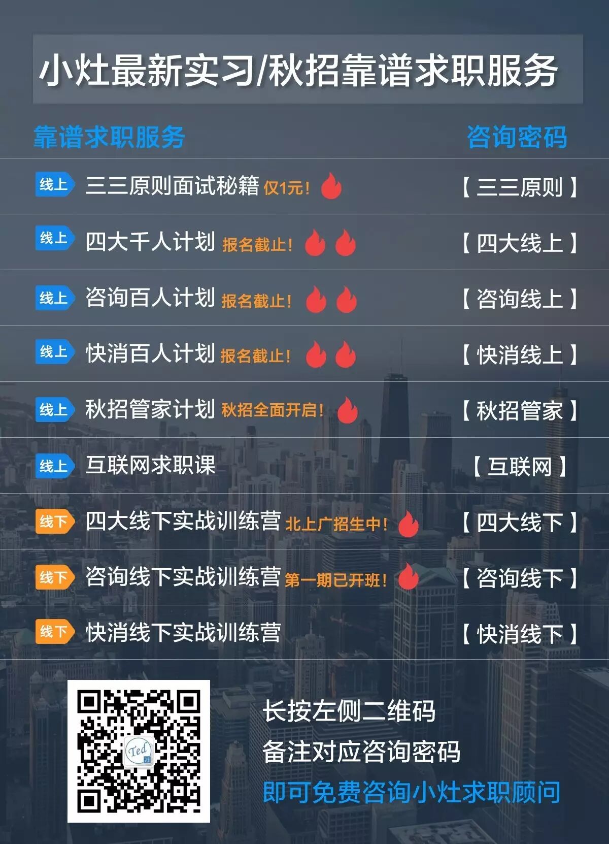 小灶求职服务涵盖四大、咨询、快消、金融等多行业