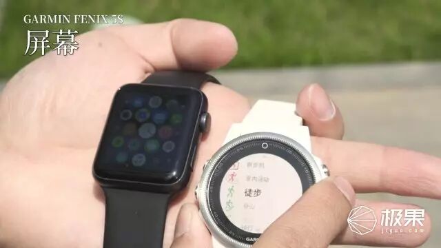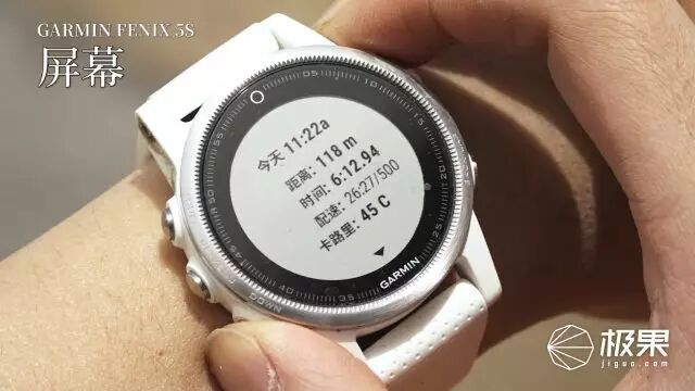 Fenix 5S的屏幕是半透反射式屏幕,他最大特点就是阳光越强,越能看清楚表盘内容,和Kindle的显示效果很类似。我们在晴天的中午实际体验了一下,手机和苹果表很难看清,而Fenix 5S就像机械表一样清晰。