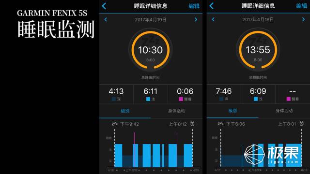 但是好几次我在睡觉之前把Fenix 5S放在桌上,晚上10点左右他就开始计算我已经深度睡眠了。当我再戴上手表睡觉后又开始正常统计,最后的结果我经常是有超长的深度睡眠时间,这一点佳明还是需要改进的。