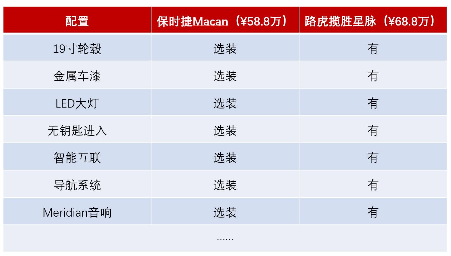 前面我们说到了揽胜星脉的设计、科技、性能,那么回到“陈较痩”车友的问题,揽胜星脉卖贵了么?说话的方式简单些,咱们我们下面直接拿保时捷Macan、路虎揽胜星脉两车最低配的配置一看,你还有发现保时捷Macan的配置确实有点“寒酸”了...