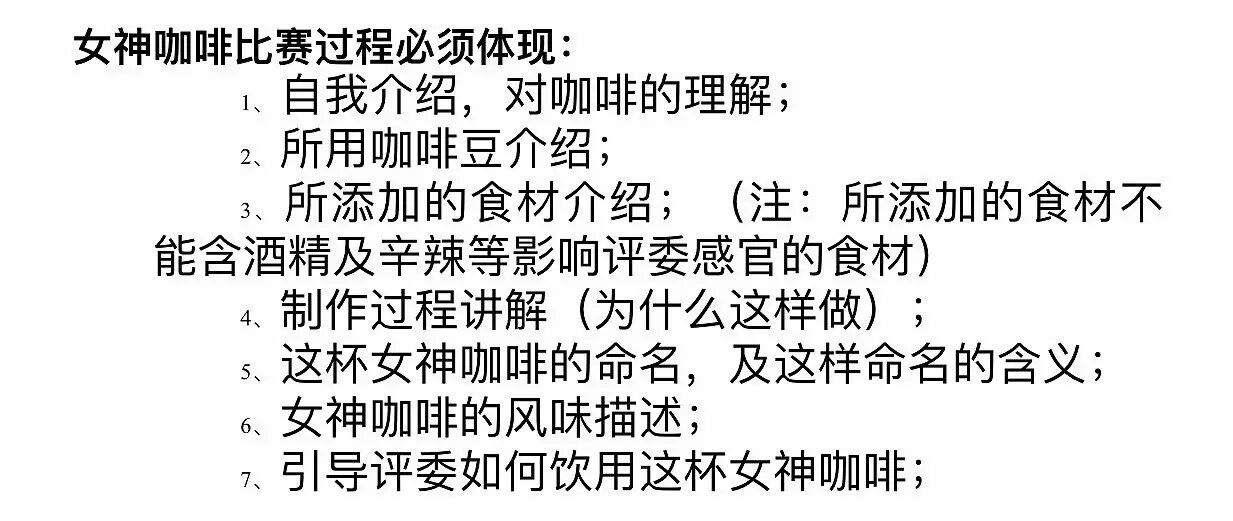 接下来看看区域决赛的比赛内容,制作女神咖啡(创意咖啡饮品)。直接看这三张说明图。