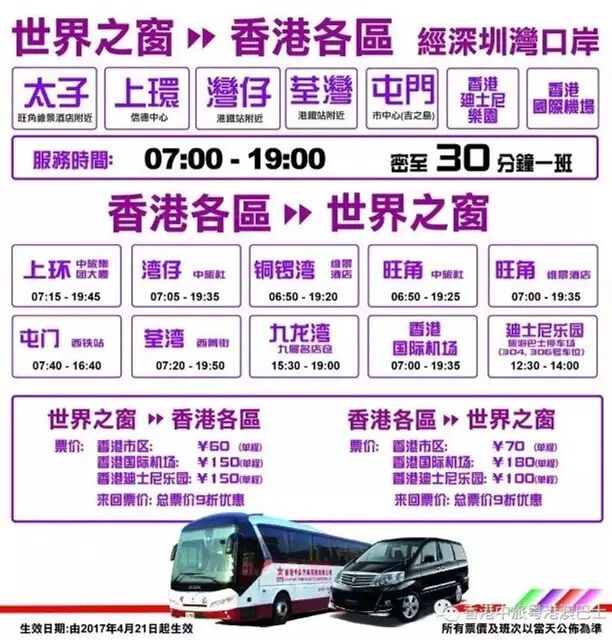 深圳世界之窗往返香港的班线服务