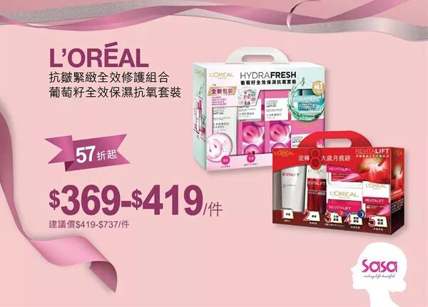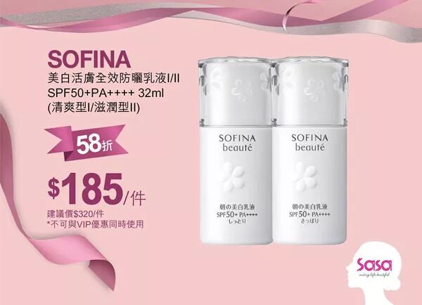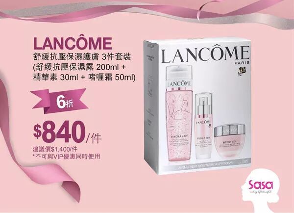 香港莎莎滋润乳液及面膜低至36折,超值优惠包括:LuLuLun面膜7片装,特价HKD26-HKD38/件;Lancome兰蔻舒缓抗压保湿护肤3件套,特价HKD840;Laneige兰芝补水精华素60ml,特价HKD175/件;SHISEIDO资生堂抗皱平衡健肤水150ml,特价HKD250/件;更多优惠详见下文,有效期至2017.11.9。