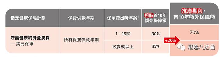 优惠内容:客戶凡於推廣期期間投保CIR,可獲額外提升首10個保單年度的保障額20%!