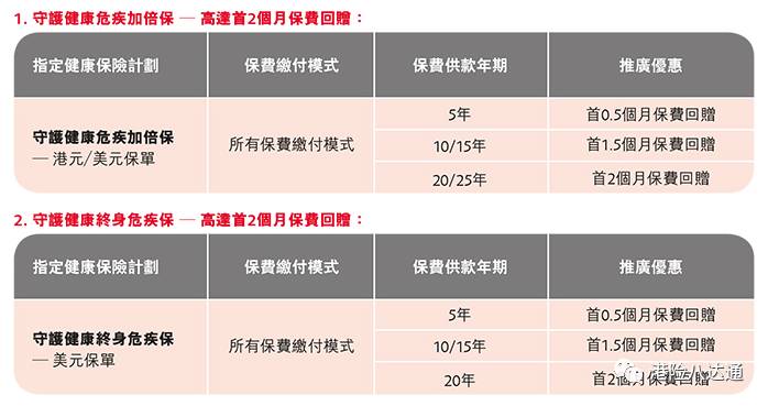优惠产品:守护健康终身危疾保、守护健康危疾终身加倍保