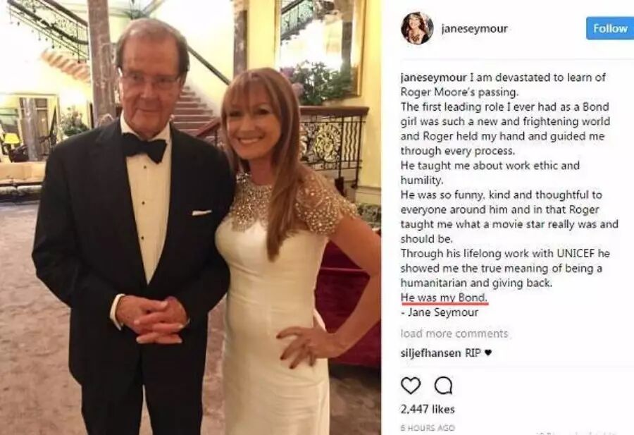 得知摩尔离世,他合作过的邦女郎纷纷在SNS上发文悼念。