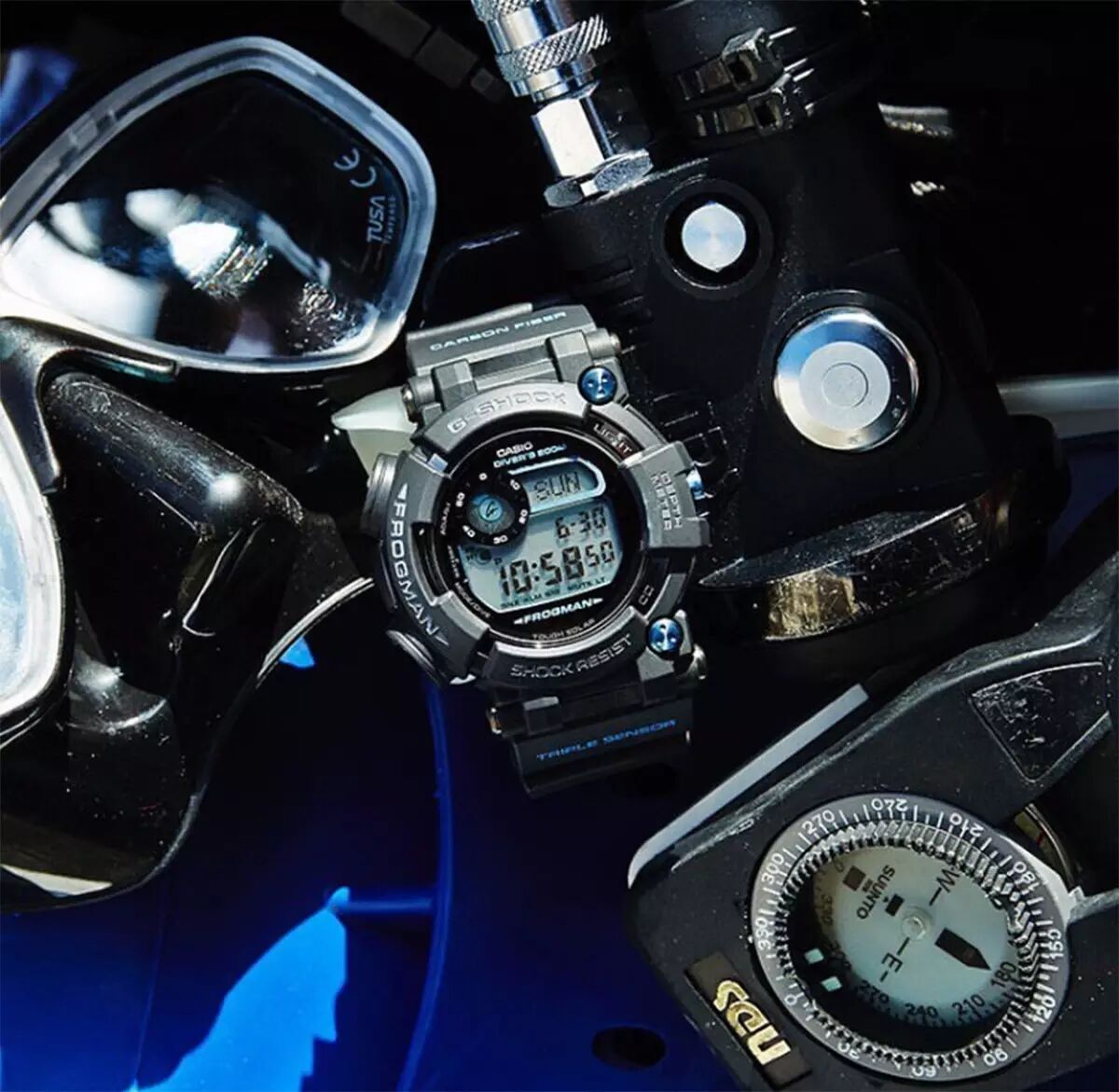 玩 G-Shock 玩到最后,你肯定想要拥有一个“蛙人”。Frogman 系列作为 Master Of G 系列里面的老大哥,简直就是许多 G 迷心中殿堂级单品,多厉害呢?我漫不经心拉两个合作单位给你论证论证,日本国宝艺术家村上隆还有日本套路小王子 MMJ,这两只蛙人市场价分别是 8 万多和 6 万多,我了个苍天!