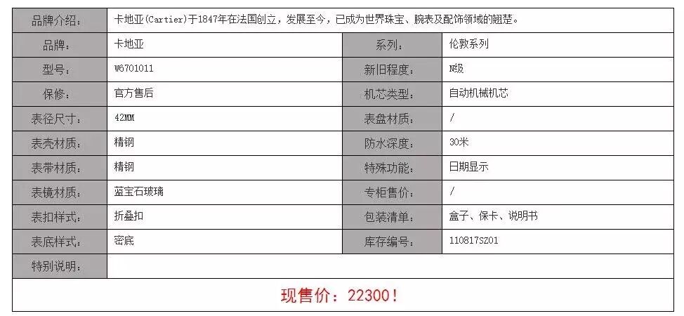 卡地亚伦敦系列钢款自动机械机芯表W6701011 现售价:22300!110817SZ01