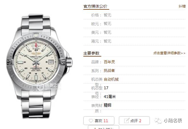 最近GF厂新出了钢带款的百年灵挑战者,弥补了喜欢挑战者又喜欢钢带款表友们的遗憾。今天小陆拿到了钢带款给大家又重录了一个视频,让大家一睹为快。在看讲解视频之前还是老规矩,照例先看一下此款的正品数据,这样也各位表友心里有个底,也好对比复刻的说明!
