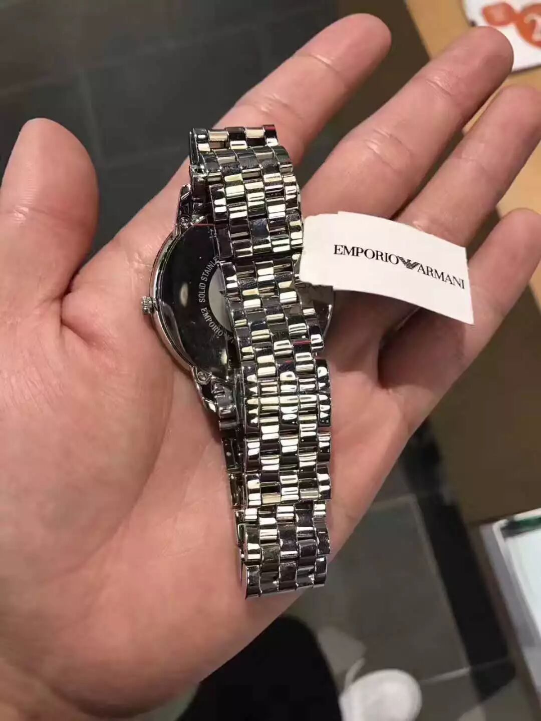 阿玛尼最新款双眼日历手表天猫在售1699人民币!瑞士进口玻璃镜面.购物袋背面的二维码可以直接扫进北欧时间官网微信公众号,69元