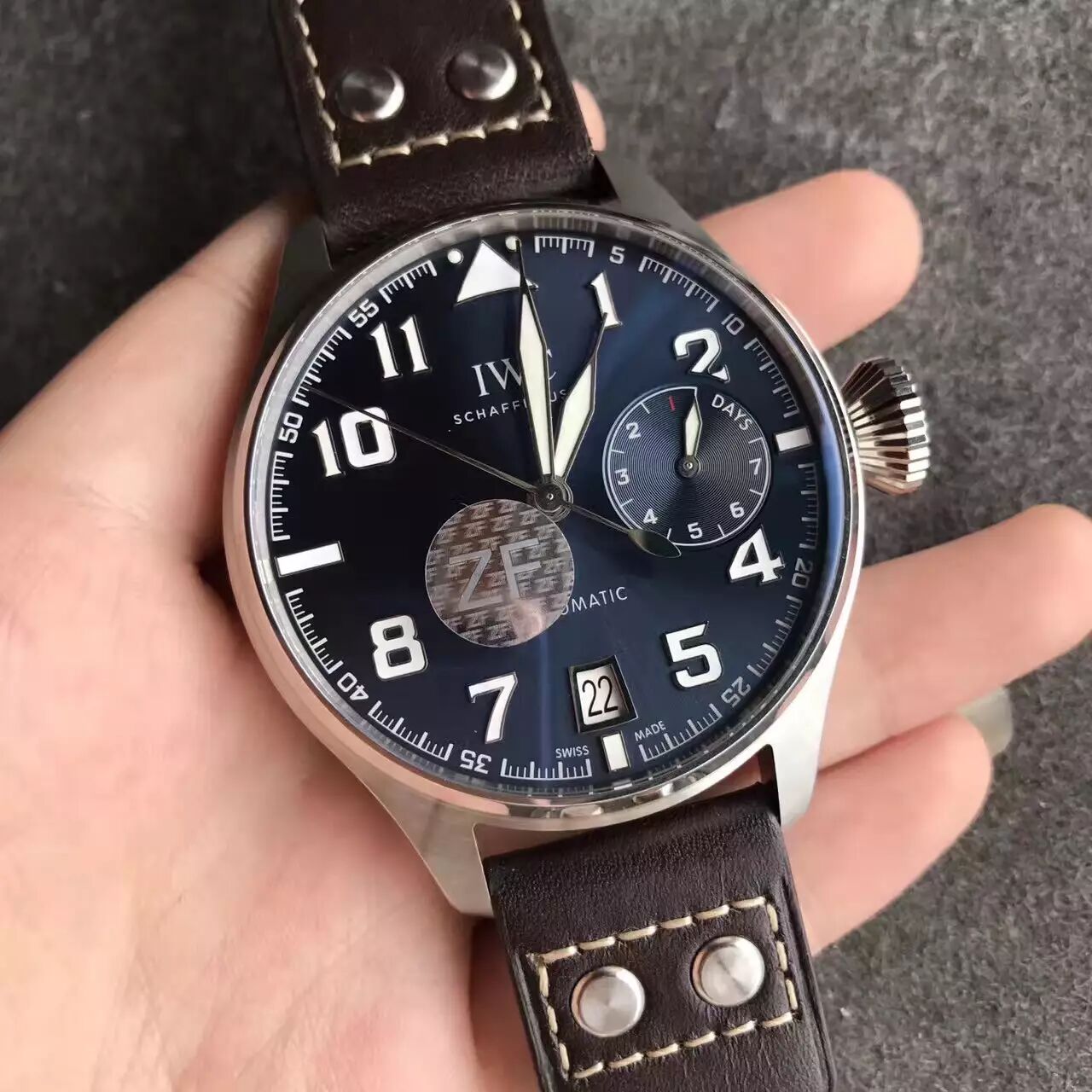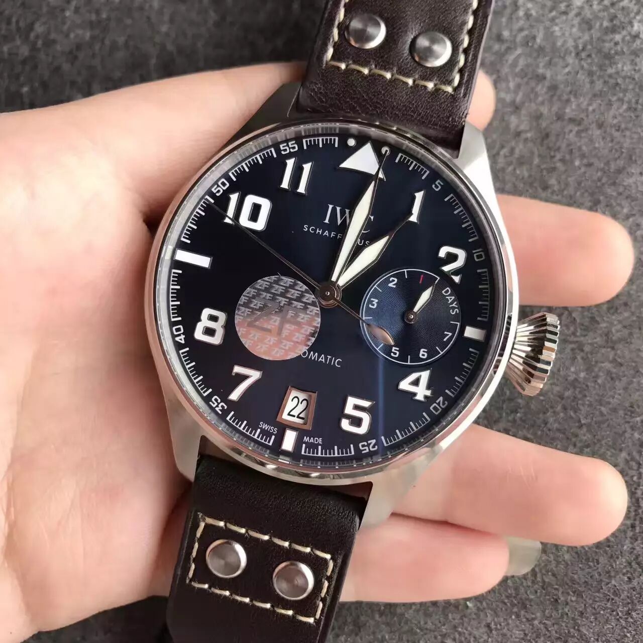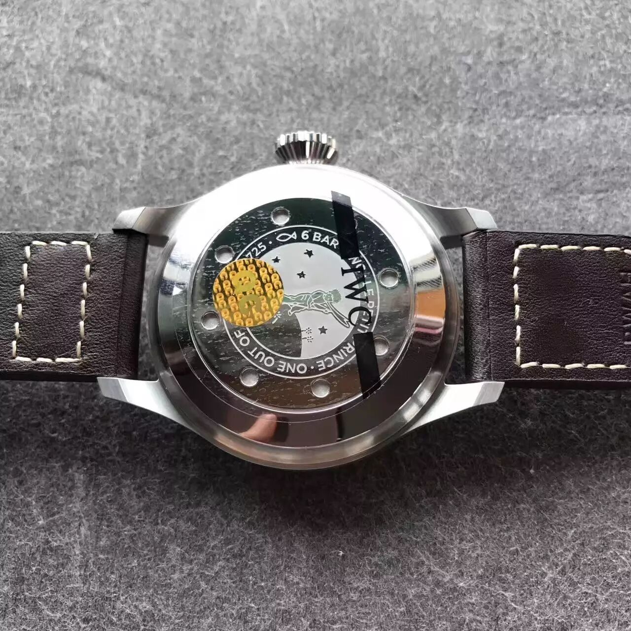 ▼IWC万国大型飞行员机械表“小王子”特别版本,骚蓝表盘,精钢表壳46mm大表盘大把头,蓝宝石防划痕镜面,表盘刻度超强夜光,搭载最新复刻原装动能显示机械机芯,意大利小牛皮真皮表带原装折叠扣。