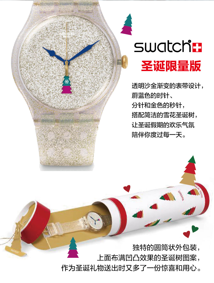谁说圣诞就得红配绿?闪银的圣诞树夹杂着金色松果——嘿,来场银色圣诞才能挤入最潮行列! Swatch斯沃琪2014圣诞特别款腕表,给你的行头点上银色“星光”,于12月13日正式发售~