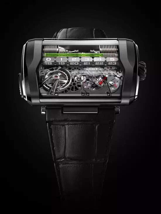 瑞士HYT创制出的腕表打破了高级制表传统界限,使用荧光液体显示时间,其活动均由活塞驱动。
