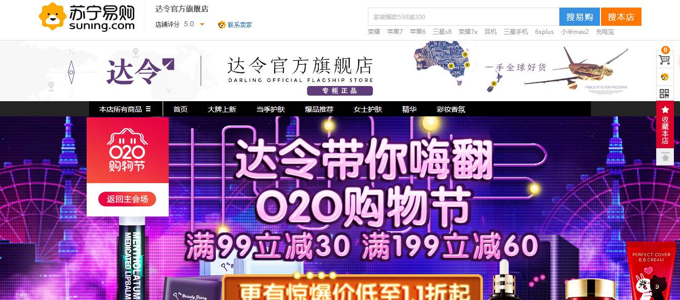 在线上平台方面,目前在PC端打开苏宁易购,或者登录APP,均可以在美妆频道看到达令官方旗舰店,店内还推出了很多爆款产品参与苏宁O2O购物节。此外,在苏宁易购海外购频道,达令平台也赫然在目。作为此次苏宁投资达令的一项重要内容,达令会成为苏宁海外购业务的重要供应商。