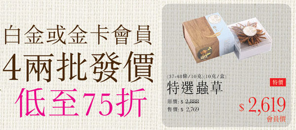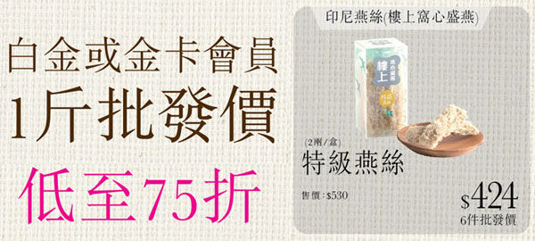 精选燕窝及冬虫夏草低至75折;