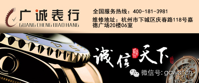 广诚表行是全国最大的名表维修公司之一,目前已有180余家维修连锁服务站及5家服务中心。杭州名表服务中心专营名表精修,品牌特约维修,定制表带等业务,配备瑞士全套专业维护设备、工具,技师长期受瑞士专业技能培训,严格按照瑞士标准服务以下品牌:百达翡丽、江诗丹顿、伯爵、卡地亚、万国、万宝龙、沛纳海、朗格、劳力士、萧邦、积家、格拉苏蒂、雅典、芝柏、宝珀、爱彼、宝玑、宝齐莱、欧米茄、浪琴、美度、天梭等。我们承诺维护标准达到瑞士表出厂标准,并在国内率先提供18个月的机芯保修期(高于行业12个月的标准)服务热线:0571-88803981,营业时间9:00—18:00,地址:杭州下城区庆春路118号嘉德广场20楼06室(庆春路与中河北路交叉口苏宁电器旁)网址:www.gc-repair.com