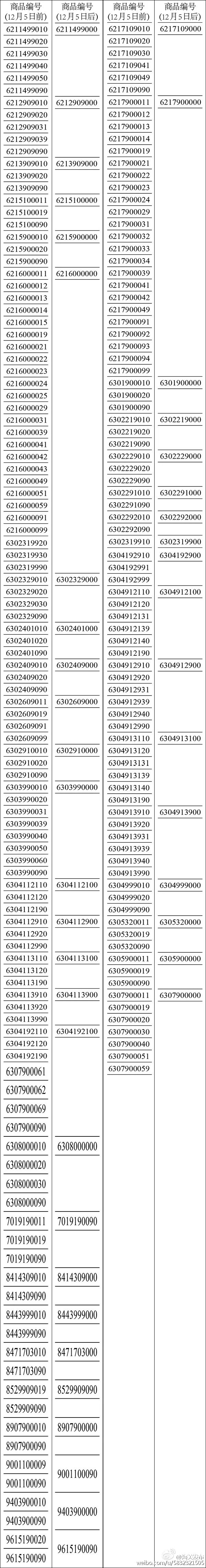 为降低管理相对人申报难度,减少归类申报差错,海关对部分适用相同进出口政策商品的海关商品编码进行了优化简化,并于2016年12月5日起执行。本次调整共删减10位编码2261个,新增401个,减少1860个。调整前后商品编码对照表内容如下:
