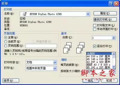 或许,你编辑表格所用的软件没有提供“缩放”打印的功能,比如有的财务软件生成的B4纸型的会计报表怎样打印到A4纸上呢?此时,我们可以直接求助所用的打印机,将打印机设置为缩小打印。现在,我们以EPSON Stylus Photo 1290打印机(操作系统为Windows XP SP2)为例进行说明。