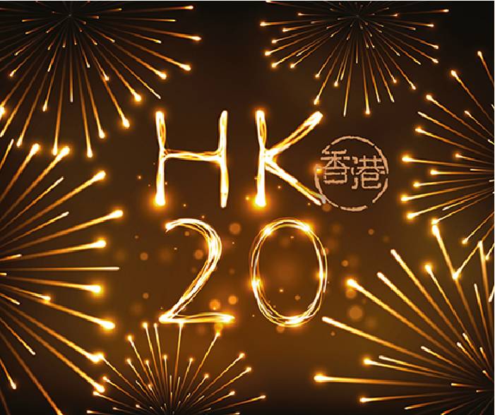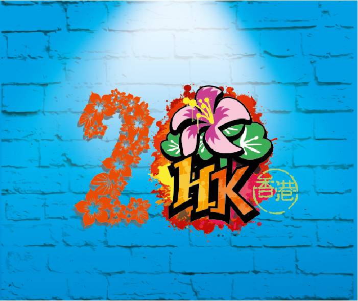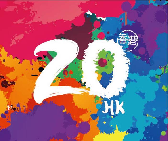 「HK20」创意图像(creative visuals)色彩缤纷,充滿活力,是特別为庆祝香港特別行政区成立二十周年的宣传品或纪念品而设计的。
