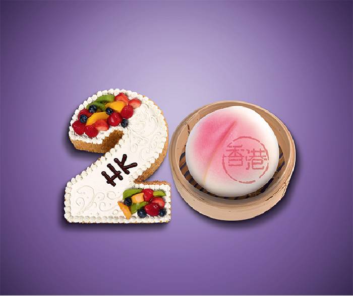 香港处处可见中西融合,美食自不例外。庆祝回归二十周年之际,当然少不了西式生日蛋糕和中式寿桃包同时奉上,相互辉映。