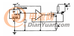 应注意的是,外加的恒流源电流的大小要与数字万用表恒流源电流的大小相等。我们采用的外加的恒流源电流由高精密基准电压源MAX6250、运放及扩流复合管组成,如图2所示。电压源MAX6250的温漂≤2ppm/℃,时漂ΔVout/t=20ppm/1000h。在这一测量过程中,电流I应当取800μA~1mA,R是极低温漂线绕电阻(若取I=1mA,R=5kΩ),这时I的温漂和时漂相当于MAX6250的水平。