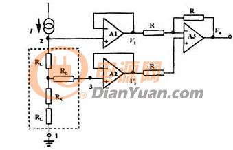 在这种馈线电阻补偿法测量小电阻电路中,测量精确度主要取决于恒流源电流I的精确度和馈线电阻RL的大小是否相等。电路中的运放可选用四通用单运放(LM324)。当用此法测量阻值小于0.5Ω的电阻时,应确保RL完全相等。
