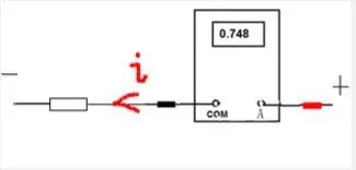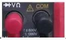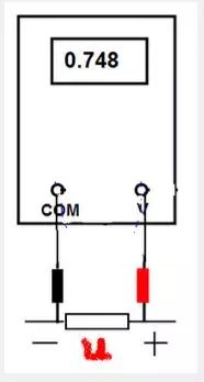 测量时先将红表笔接到电流端孔,黑表笔接到COM端孔