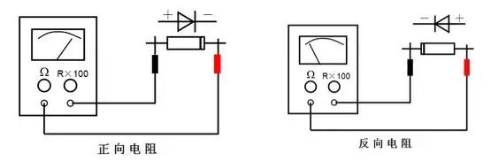 测量档,红表笔接被测二极管正极,黑表笔接被测二极管负极