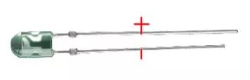 发光二极管正、负极的判断通常发光二极管的引脚中,较长的引脚为正极,较短的引脚为负极。另一种判别发光二极管正、负极的方法是,将发光二极管置于灯光照射处,可观察到两引脚在管体内的形状,如图所示,其中较长的一端是负极、较短的一端是正极。
