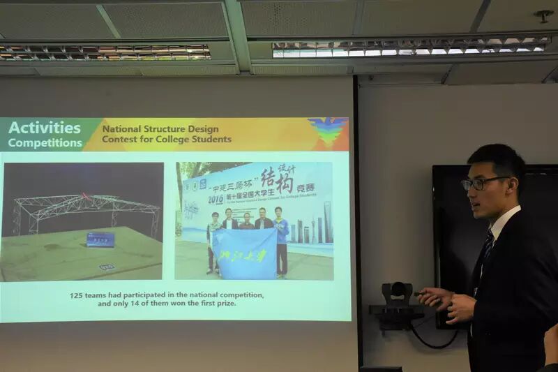 2月20日上午,访问团来到本次访问的第一站——香港科技大学。科大土木及环境工程学系与浙大建工有着长期的密切联系,尤其是在ASCE-ISG组织的建设上为我校提供了诸多帮助。首先,同学们来到土木与环境工程系,与该系教师、同学举行座谈会。土木及环境工程学系系主任罗康锦教授、王刚教授、郑展鹏教授对访问团表示欢迎,并介绍了工学院以及系所的发展历史和现状。据了解,香港科技大学土木系虽然规模小,但每个老师、学生都很努力,在各方面均取得了不错的成果,每年也吸引了不少内地学生前来深造,同时香港政府和高校提供了各种丰厚的奖学金,如HKPF、UPF等。陈喜群老师也介绍了我校以及建工学院的发展情况,两校师生还就本研学科教育、国际化建设等进行了讨论。