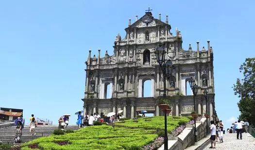 澳门代表性的建筑,为圣保禄教堂前壁遗址,来澳门不参观大三巴牌坊就好比到巴黎不去看埃菲尔铁塔。这座历经沧桑的教堂曾两次毁于火灾,直到1602年才得以重建。不幸的是,教堂在大火中彻底被毁,仅剩正面前壁、大部分地基以及教堂前的石阶。因教堂前壁形似中国传统牌坊,将之称为大三巴牌坊。