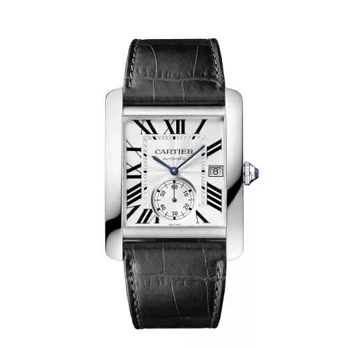 腕表点评:卡地亚TANK腕表诞生于1917年,是卡地亚创意的顶级典范,亦是方形与长方形表款的现代诠释。Tank系列圆形线条率先预示装饰艺术风格的美感规则,其几何学设计更是美学的现代标准。 腕表采用34.3x44.0毫米 的表径设计,精钢表壳打造,腕表6点钟位置设有经典小秒盘,3点钟位置设有日期显示窗口,实乃点睛之笔,腕表内部搭载的为卡地亚1904MC型自动上链机械机芯,精准时尚。