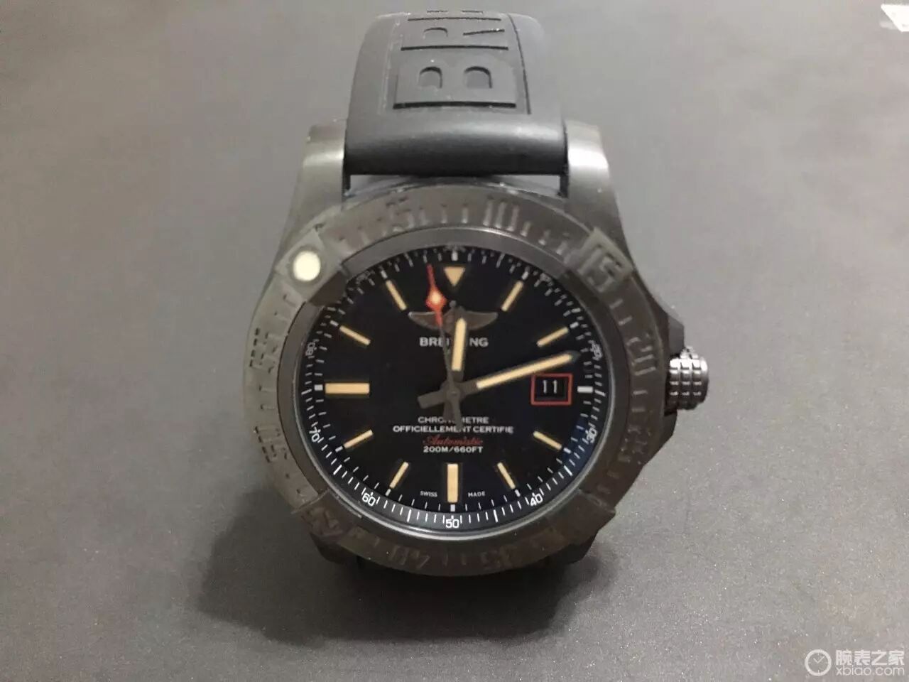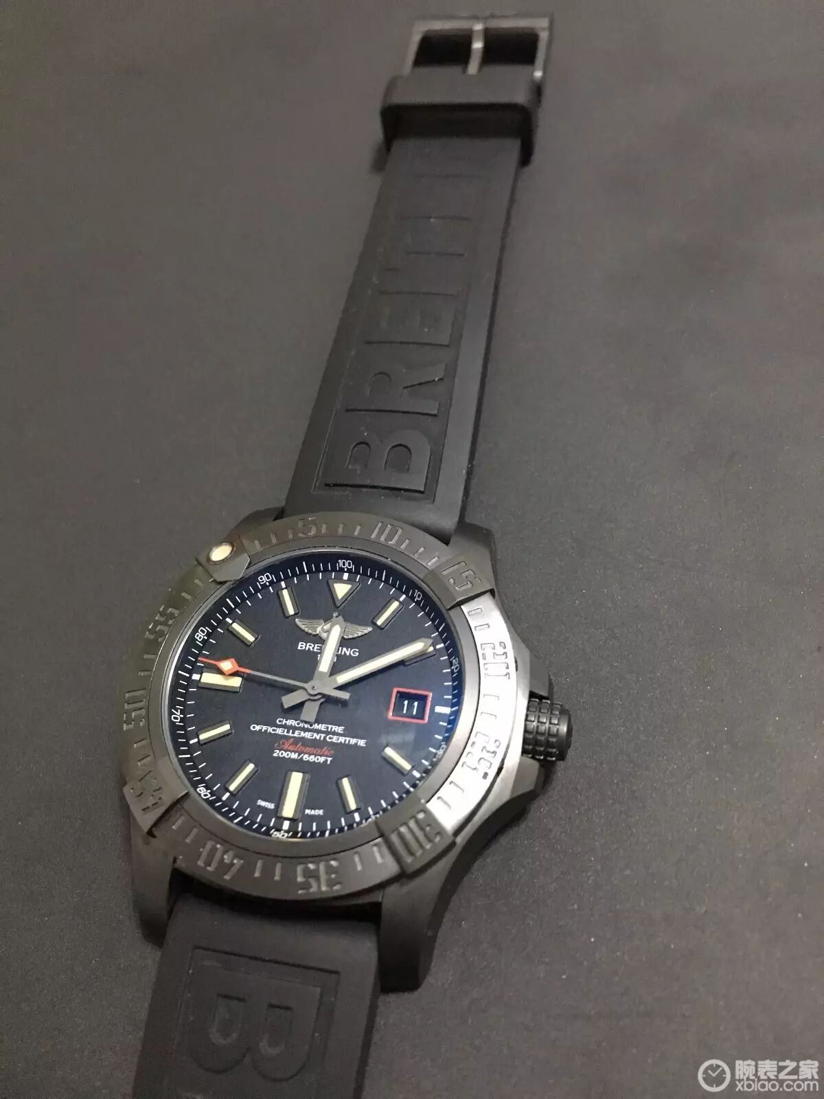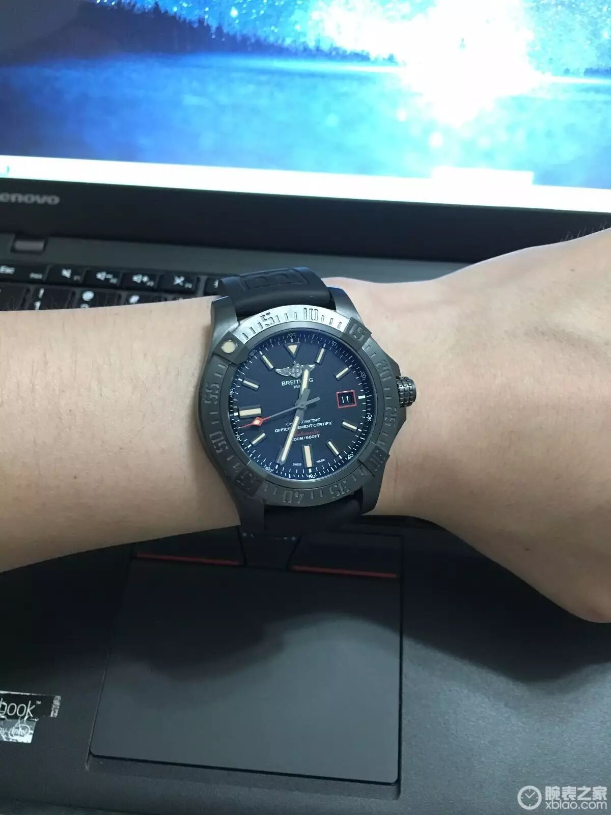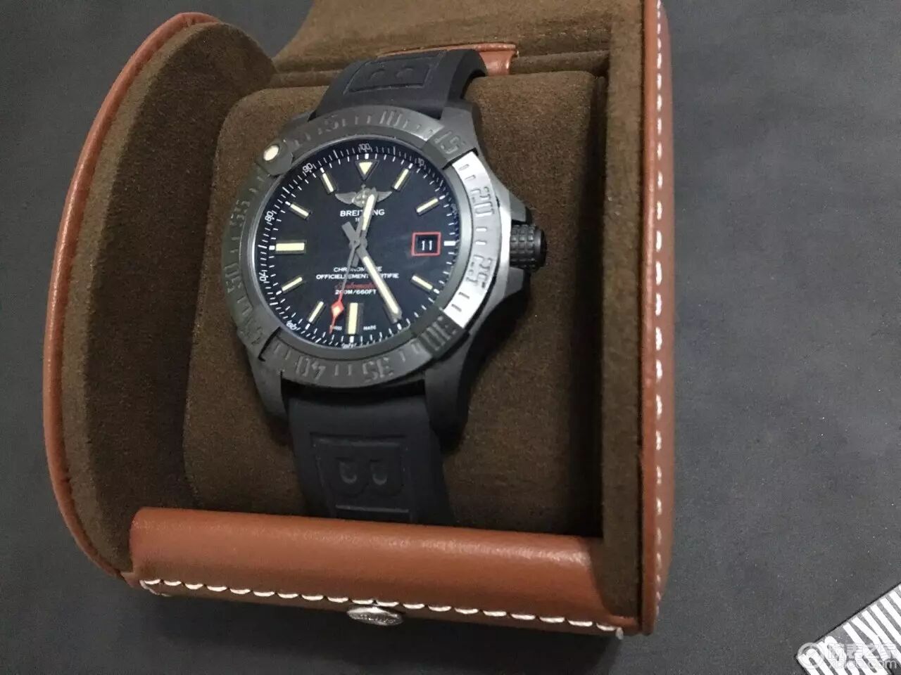 香港购入,属于百年灵授权的中环国王表行,老板人很好像个爷爷,店铺不大表款相当多,貌似有两三个瑞士小众品牌,也不太认识,据老板介绍这几款小众相当不错,但最终还是选择百年灵;之前也去过几家百的店铺试戴,从挑战者、复仇者黑鸟、战机、到航空计时AB012721(强烈中毒,介于超预算没办法)。最终在国王表行试戴黑鸟44(手腕17cm),中毒拿下,原装表带直接取下,不太喜欢,换用橡胶带!