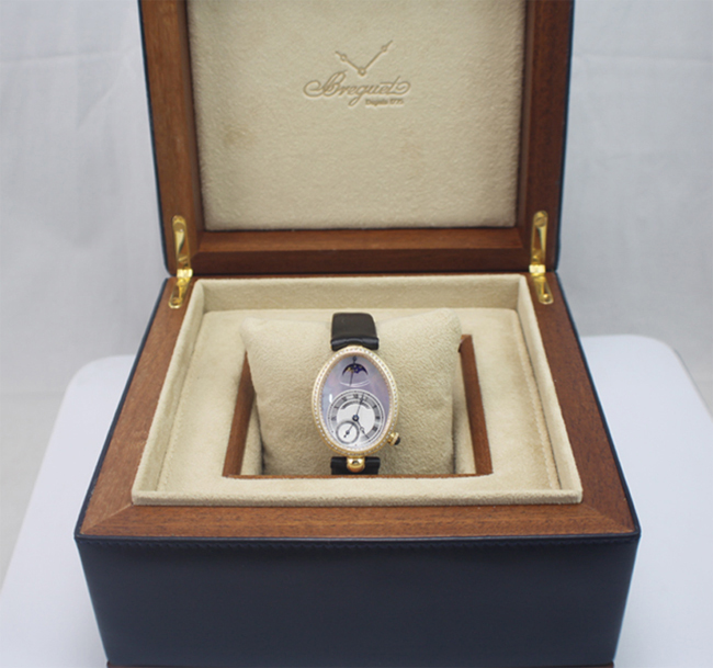 宝玑银白色表盘18k黄金镶钻女士机械表