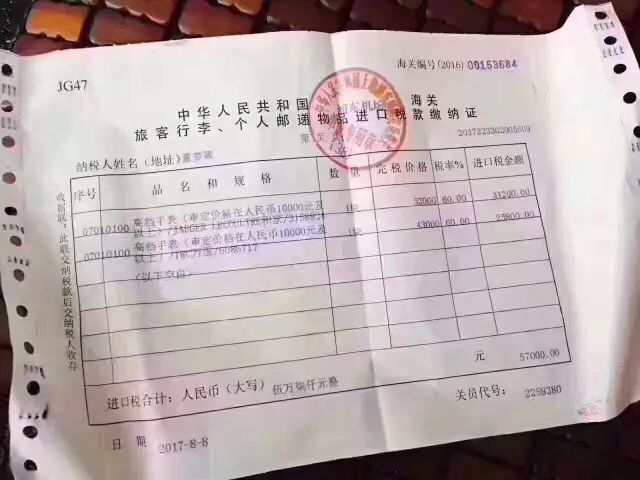 海关征税5万7的税