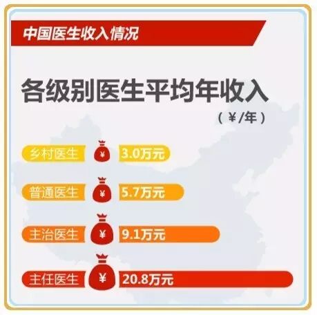 圈妹发现中国医师协会2015年发布的《中国医师执业状况白皮书》显示,2014年65.9%的被调查医师对自己的收入不满意,其中选择“很不满意”的比例为19.1%。白皮书显示,中国内地医生年均收入仅为人民币67,516元。