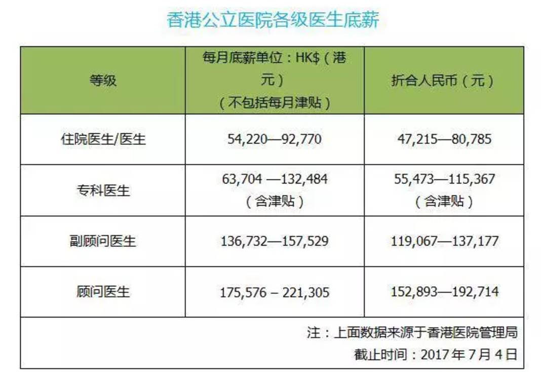 而香港医管局公布的资料显示,截止今年7月,公立医院医生每月最低底薪都在港币50,000以上,顾问医生甚至达到了170,000以上!那么,私立医院的医生们收入就更可观啦!