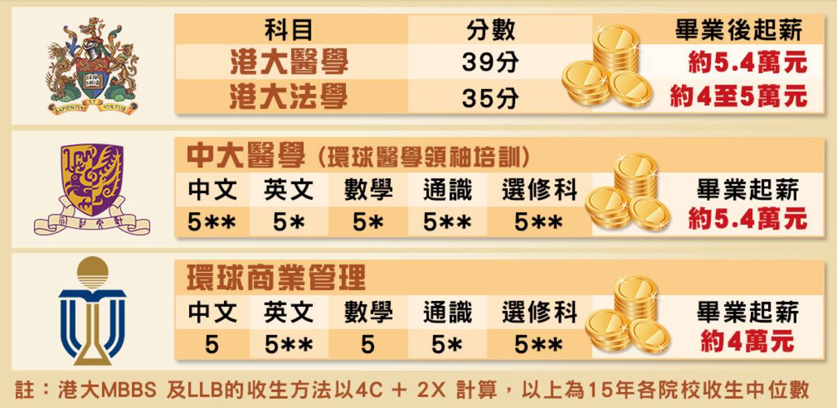 那么,要上港大医学、法学,中大医学和科大的环球商业管理究竟得考成什么样子?