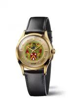 1953年,天梭迎来了百年诞辰,为了庆贺这一盛事,天梭特别推出了两款腕表:一款是带日历显示的腕表,另外一款则是天梭一百周年纪念款腕表。在纪念款腕表的表盘上,设计师用珐琅绘制了代表天梭家族的盾形纹章。这一特别的设计意味着天梭家族在100年以来一直掌握着这家公司的命脉。