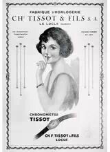 这幅天梭广告在1923年刊登于《世界钟表杂志(RIH)》上。广告中,一位优雅的女士佩戴着一枚天梭钻表。天梭的这款天文台女表使这位女士充满了自信风采,吸引着每一位顾客的羡慕眼光。