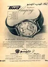 该广告于1948年在阿拉伯地区推出,主要展示了1938年发布的天梭Camping腕表。它强调了该腕表的耐用性和防水功能,适合各种场合佩戴。