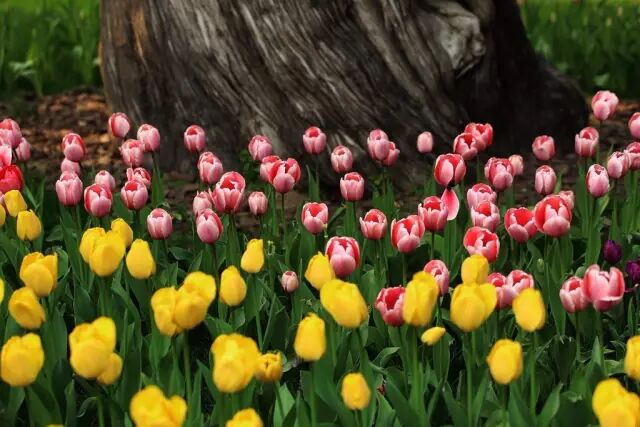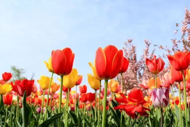 中山公园郁金香的盛放,每年都会吸引大批赏花游客和摄影爱好者前往。中山公园的郁金香采用大色块地栽、盆栽自然摆放以及与主题花坛相结合的方式,充分体现了和谐自然的布展手法。