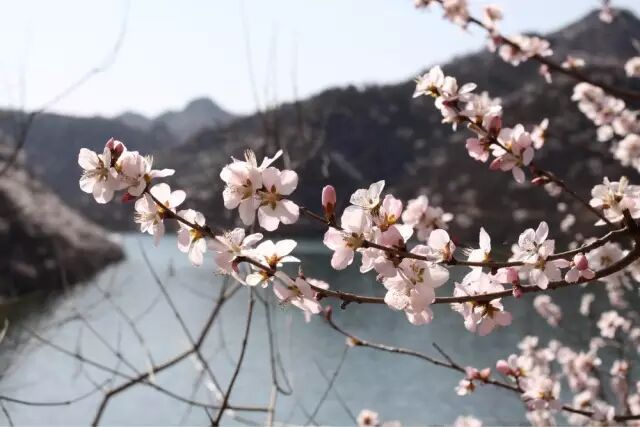 置身水长城,放眼望去,无论山上水边、长城内外,目光所至全是桃花、杏花绚丽唯美的身姿。一团团、一簇簇、淡淡的红、浅浅的白,红白相间遍布山间湖畔。