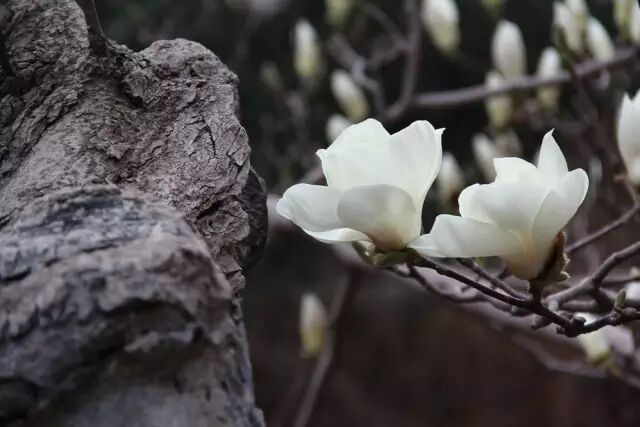 种植于明代的潭柘寺“二乔玉兰”,是享誉京城的名花。因其花瓣兼有粉、白双色,十分娇艳,使人流连忘返,又好似三国时期的大乔、小乔两位倾城之女,故名“二乔玉兰”。