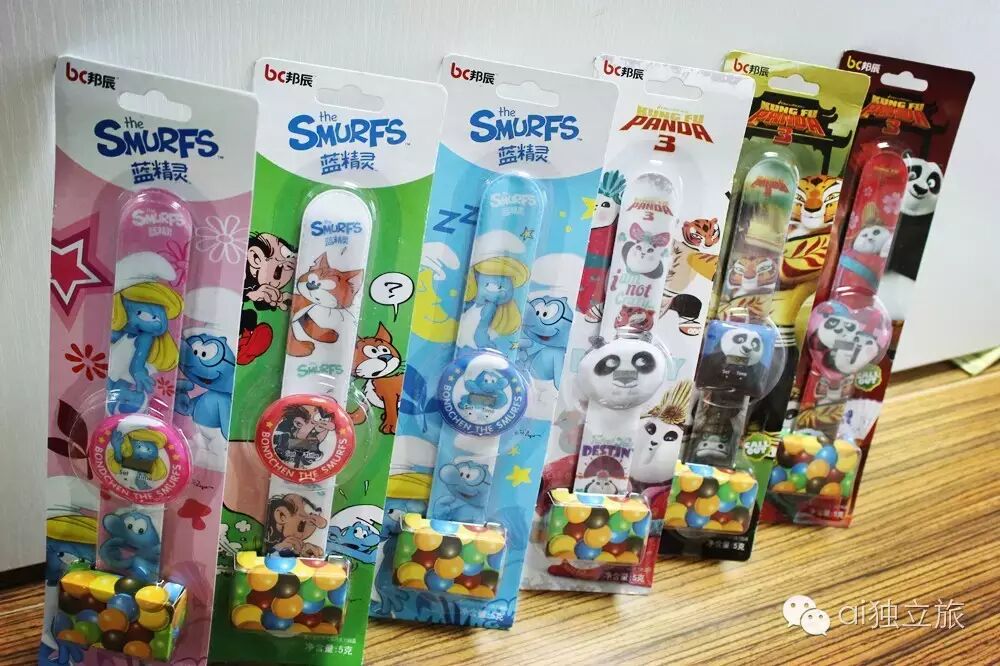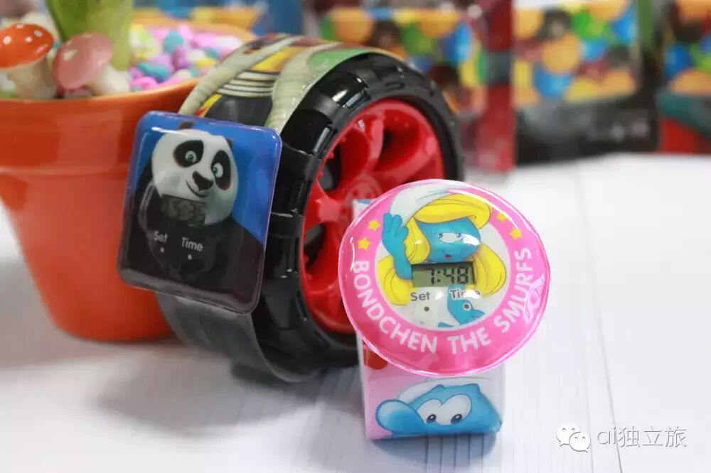 同时坐拥蓝精灵与功夫熊猫二大国际卡通品牌,6个款式。设计者更是精心的在表盘做足功夫,卡通的表盘配上卡通的表带,吸引力十足。产品新颖,外形美观,是一种即环保又独特,非常理想的实用性玩趣糖果手表。