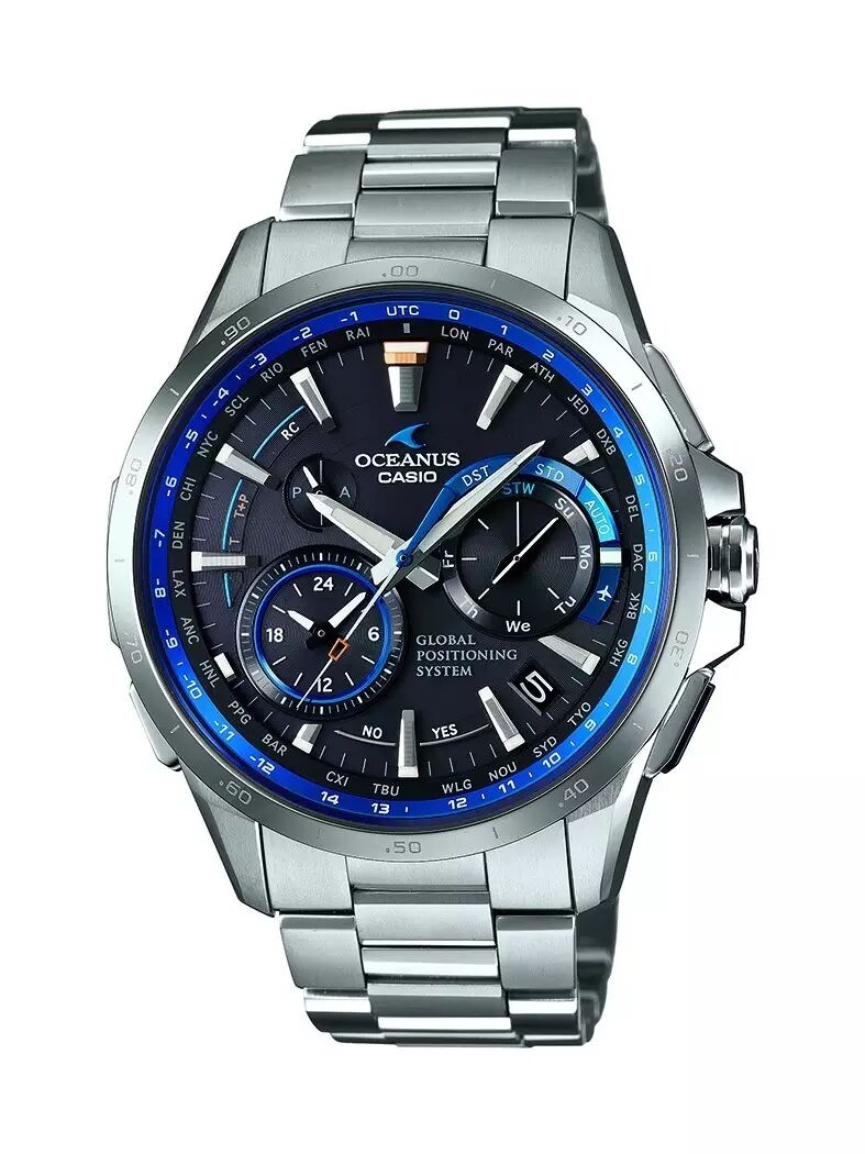 这是由卡西欧旗下高端金属指针腕表品牌OCEANUS【逸时】推出的※全金属材质GPS+电波太阳能指针表。将GPS卫星信号接收和六局电波接收两种不同的时间校正模式集合于纤薄表身之中,开创“地球时间”的崭新纪元。GPS+电波接收,在全球捕捉时间,并在第一时间与当地精准同步。在标准电波覆盖区域,OCW-G1000 优先接收标准电波;而在非电波覆盖区域,接收来自GPS卫星时间信号,从而实现全球范围内,无论在何地都能够稳定接收时间信息,精准校对手表时间。此外OCW-G1000采用一键式操作,长按手表右下方的GPS按钮,最快3秒便可捕捉到卫星,最快7秒自动校时,更可根据位置信息自动解析时区以及判断所在地有无夏令时,自动显示正确的时间。