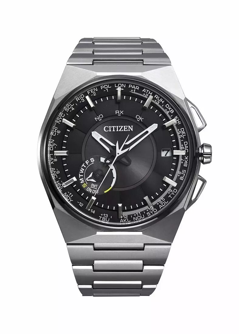 表壳采用具有太空金属光泽和镜面抛光质感的流线型设计;表盘上四根表针分别由四个独立马达控制,移动和反应更为迅速。而钛合金材质的运用,使得腕表更为轻薄,厚度仅为12.4毫米。不仅可以通过接收卫星信号而校对时间,同时还可以显示40个世界城市的时间、夏令时、星期和日期显示以及万年历。