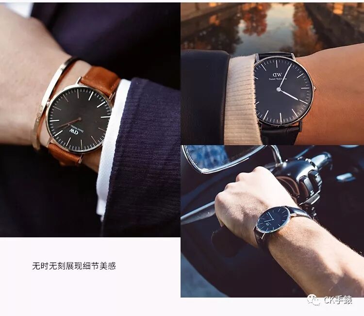 如果你喜欢DW的那种简约的风格,但是接受不了满大街都是DW的风格,那你就可以选择一下CK了,跟DW差不多的简约风格,不过性价比确实比DW要好,如果跟DW对比的话,我肯定会选CK的,在很多大的商场就可以购买到,不过都会比较贵。